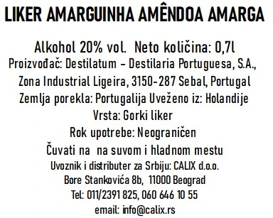 Stigao je Likier od Badema iz Algarvea ,liker koji u svakoj kapi nosi sunce juga Portugala i miris beskrajnih bademovih polja. Nastao po tradicionalnoj portugalskoj recepturi, ovaj liker spaja punu aromu svežeg badema i nežnu slatkoću koja osvaja već na prvi gutljaj. Svaka boca predstavlja spoj portugalske tradicije i umeća koje se prenosi generacijama. Osetite luksuz južnog Portugala u svakom gutljaju ovog likera, stvorenog po staroj recepturi koja ističe intenzivan miris badema i savršen balans slatkoće. Algarve je čuven po širokim plantažama badema, a njihov prolećni miris pretočen je u ovo jedinstveno piće koje donosi autentičan duh portugalske obale.