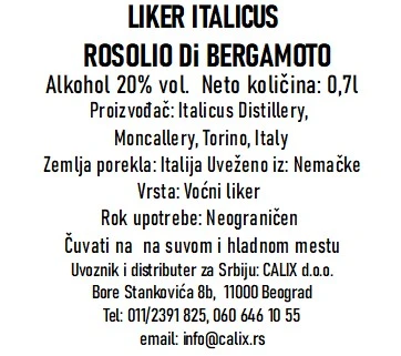 Liker Italicus Rosolio Bergamoto je italijanski liker iz 15. veka, proizveden od latica ruža u porodičnoj destileriji u Torinu. Sastojci prolaze kroz proces „sfumature“ – tradicionalnu tehniku za ručno ekstraktovanje eteričnih ulja, pre nego što se pomešaju sa neutralnim italijanskim alkoholom. Pored svojih izvanrednih aroma i Italicus Rosolio Bergamoto ima unikatan izgled i dizajn flaše – tirkizna boja i jedinstven oblik boce, koji se ne viđaju svaki dan, sa sigurnošću će oduševiti sve ljubitelje i kolekcionare dobrih pića i likera!