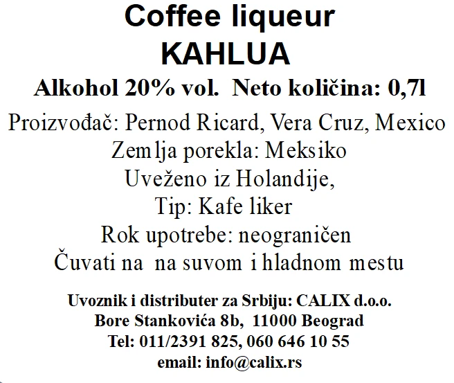 Liker Kahlua je meksicki liker koji se može pronaći na našoj online prodavnici po veoma povoljnoj ceni. Posetite nas i poručite svoje omiljeno piće.