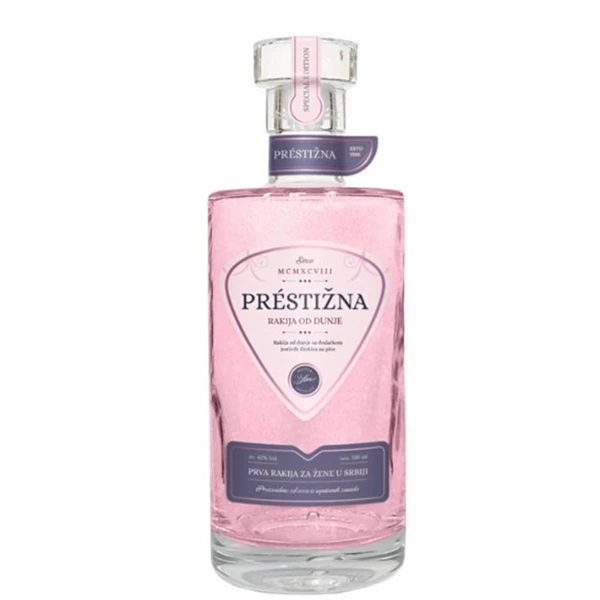 Rakija Prestižna je prva rakija za žene u Srbiji, karakteristična po svom luksuznom izgledu i jedinstvenom ukusu dunje sa jestivim šljokicama.