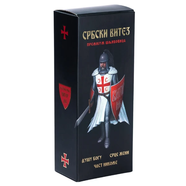 Rakija Srbski Vitez Premijum Šljivovica je vrhunska srpska šljivovica namenjena onima koji traže više od obične rakije. Proizvedena je na obroncima Zlatibora, u malim količinama, uz punu posvećenost tradiciji i kvalitetu. Pravljena je od pažljivo biranih sorti šljive – Stenlej, Čačanska rodna, Crni i Beli piskavac i Požegača – čiji spoj daje pun, bogat i zaokružen ukus, sa izraženom voćnom aromom i dugim, toplim završetkom. Svaki deo procesa proizvodnje rakije Srbski Vitez Premijum Šljivovice pažljivo je kontrolisan kako bi se postigao njen prepoznatljiv ukus. Nakon dvostruke destilacije sazreva punih 9 godina u buradima od šljive i hrasta, delom i u barikiranim buradima, gde sporim sazrevanjem dobija mekoću, dubinu i suptilne drvenaste note.Rakija Srbski Vitez Premijum Šljivovica je idealna za poklon, kolekcionare i istinske ljubitelje premium domaće rakije.