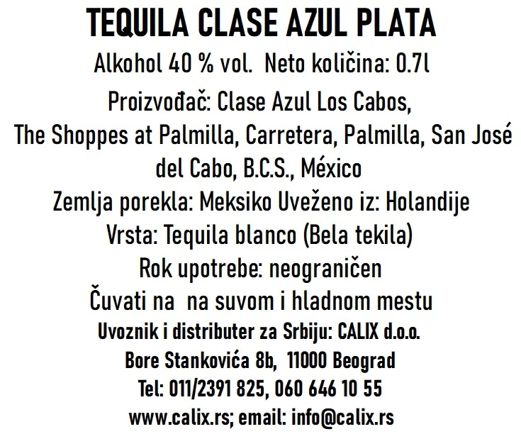 Tekila Clase Azul Plata je luksuzna blanco tekila koja se ne izdvaja samo iz gomile mnogih tekila na tržištu zbog svog jedinstvenog ukusa i visokog kvaliteta, već i zbog svoje prelepe flaše. Za ovo izvanredno meksičko remek-delo koriste se samo agave plave iz organskog uzgoja sa visoravni „Jalisk-a“, koje su stare između 6 i 8 godina i potpuno su zrele. Kristalno čista tekila inspiriše čim otvorite flašu svežim aromama pomorandže, limuna i nane, koje prate note vanile, zelene jabuke i zelenog čaja. Sveži ukusi mente i citrusa nastavljaju se na nepcu, a primećuju se i naznake zelene guave. Odlična rakija od agave se posebno dobro slaže sa morskim plodovima uz dodatak citrusa, sa sušijem, svežim voćem i krem sirom. Odakle tekila Clase Azul Plata dobija svoj jedinstven i svež ukus? Kao i sve tekile ovog brenda, tekila Azul Plata je napravljena od 100% organskih plavih agava, koje se uzgajaju na jednoj od najviših tačaka u visoravni Jaliska. Agave ovih regiona imaju karakterističan ukus zbog posebnih klimatskih uslova. Da ne bi uništili ove posebne ukuse, srca agave se kuvaju veoma sporo tokom perioda od 72 sata u tradicionalnim pećima od cigle. Pažljivom dvostrukom destilacijom dobija se tekila vrhunske klase sa finim slatkim aromama, koja je ipak izuzetno sveža. Šta je jedinstveno kod brenda tekile Clase Azul? Jedan od najboljih brendova tekile, brend tekile Clase Azul na jedinstven način spaja ukuse i umetnost Meksika. Tekile se prave od najboljih agava sa puno ljubavi iu složenom procesu koristeći tradicionalnu zanatu. Sam njegov zapanjujući ukus oduševljava ljubitelje tekile, ali samo to nije dovoljno za renomirani brend. Umesto toga, remek-dela tekile se sipaju u ručno rađene dekantere napravljene u Santa Maria Canchesda, Meksiko. Prelepi dekanteri su pojedinačno oslikani drevnim tehnikama autohtonog naroda Mazahua. Svaka boca je stoga jedinstvena i garantovano će privući pažnju svih u baru.