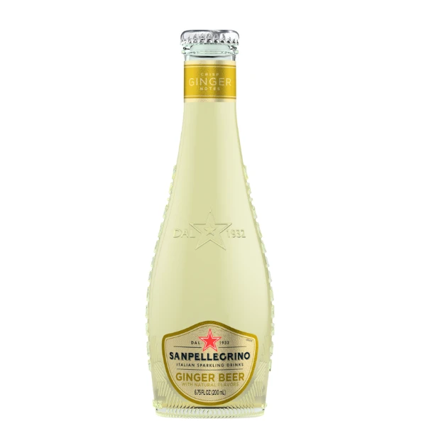 San Pellegrino Ginger Beer je elegantno bezalkoholno gazirano piće na bazi đumbira koje ima izražen, pikantan ukus i jaču aromu đumbira u poređenju sa ginger ale-om. Tradicionalno se pravio fermentacijom đumbira, šećera i vode, ali se danas najčešće proizvodi kao gazirano bezalkoholno piće sa ekstraktom đumbira. Njegov ukus je snažan, ali uravnotežen – blago pikantan, sa suptilnom gorčinom, laganom slatkoćom i osvežavajućim citrusnim završetkom u kojem dominira aroma đumbira. Iako u nazivu nosi reč „beer“, ovo piće ne sadrži alkohol.Naziv potiče iz 18. veka kada su se napici od đumbira fermentisali na sličan način kao pivo. Savršen je za uživanje samostalno ili kao baza za koktele, posebno za poznati koktel Moscow Mule. Najbolje ga je služiti dobro rashlađenog, na temperaturi od 6–8°C, u niskoj tumbler čaši, uz dodatke poput svežeg krastavca, nane ili začina poput kardamoma i bibera.