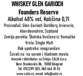 Viski Glen Garioch Founders je vrlo poseban viski sa izuzetnim ukusom, pa je samim tim omiljen među obožavaocima ovog brenda. Proizvodi se u jednoj od najstarijih destilerija „Glen Garioch“ koju su osnovala braća Manson. Dolina Gariocha je bila poznata kao žitnica Aberdeenshire-a. Bogata je sa 150 kilometara plodne zemlje preko koje se slivaju izvori sveže vode u savršenom okruženju za destileriju viskija. Sazrevanje se odvija u bivšoj šeri i burbon bačvi, bez procesa filtriranja. Viski Glen Garioch je savršen primer spajanja finih ukusa slatkih aroma vanile koji bude čula svojom kremastom aromom i izuzetnom strukturom!