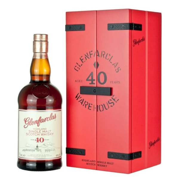 Retko se može pronaći viski kao što je Glenfarclas 40 godina, jer viski te starosti retko gde je dostupan u prodaji. Ali ukoliko želite da kupite ekskluzivni „Single Malt“ viski koji potiče iz jedne od najpoznatijih destilerija u Škotskoj, onda je ovo izuzetna prilika. I ovaj viski spada u red„Glenfarclas“ klasika, upravo zbog toga što je ovaj poseban viski, bogat predivnim aromama voća šerija, notama hrasta i ukusnim karamelama upravo zbog toga što je proveo 40 godina u specijalnim šeri-buradima. Ovaj strogo ograničeni retki viski isporučuje se u crvenoj drvenoj kutiji, koja je napravljena po uzoru na kapije skladišta destilerije. Nema sumnje da je viski Glenfarclas 40 godina pravi izbor za ljubitelje posebnih viskija. Dakle, ako tražite viski koji je dugo sazrevao, i vrlo fini Single Malt viski za vašu kolekciju, ovaj Glenfarclas će obogatiti vaš bar!